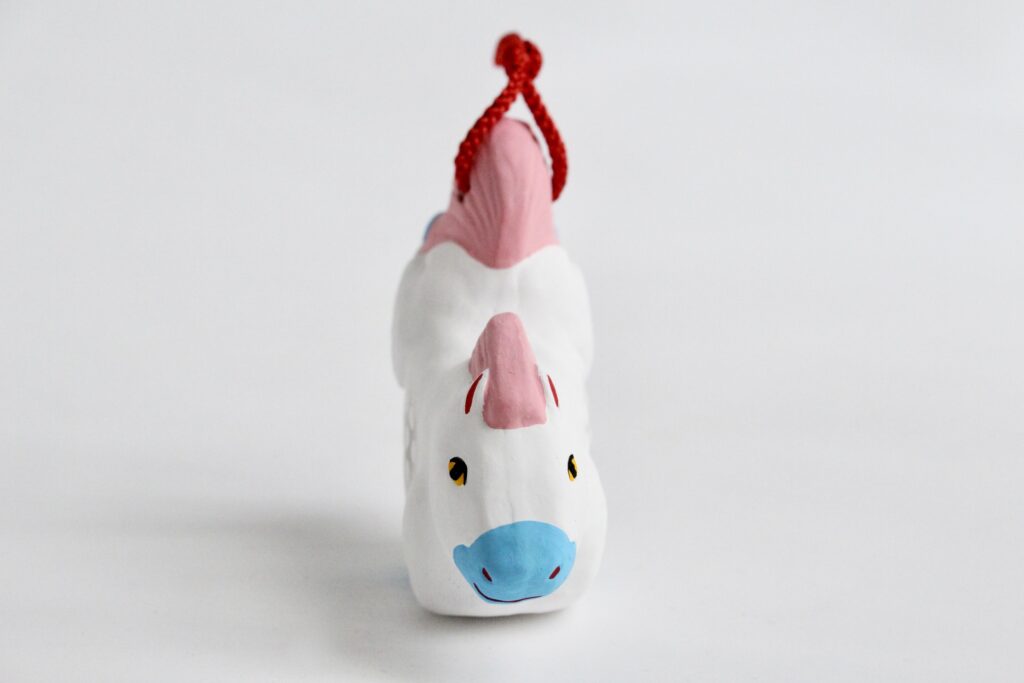 力強く前へと進む願いを込めた、縁起の良い人形です。