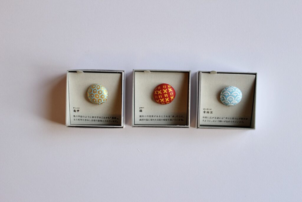 縁起の良い模様がピンズになっているため、持ち運びできる縁起物として人気です。