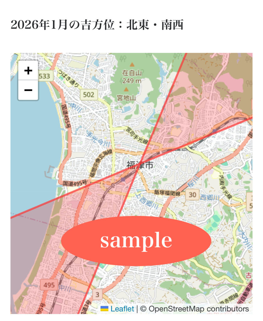 本記事では、2026年の各本命星の「月盤吉方位」を反映したマップツールを利用いただけます。